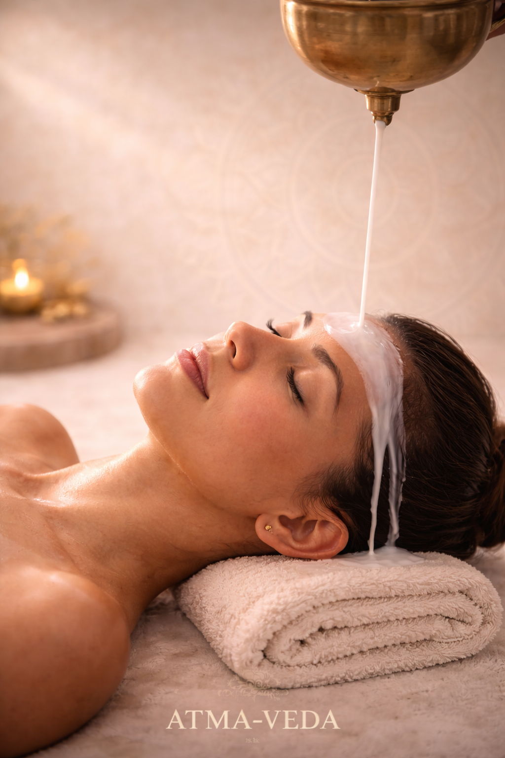 Bei dieser speziellen ayurvedischen Praxis wird Buttermilch (zum Abkühlen von Pitta, Feuer) in einem kontinuierlichen Stahl auf die Stirn gegossen. Optimal ist die dreimalige Anwendung in aufeinander folgenden Sitzungen im Rahmen einer umfassenden Kur, wie z.B. einer Panchakarma.
